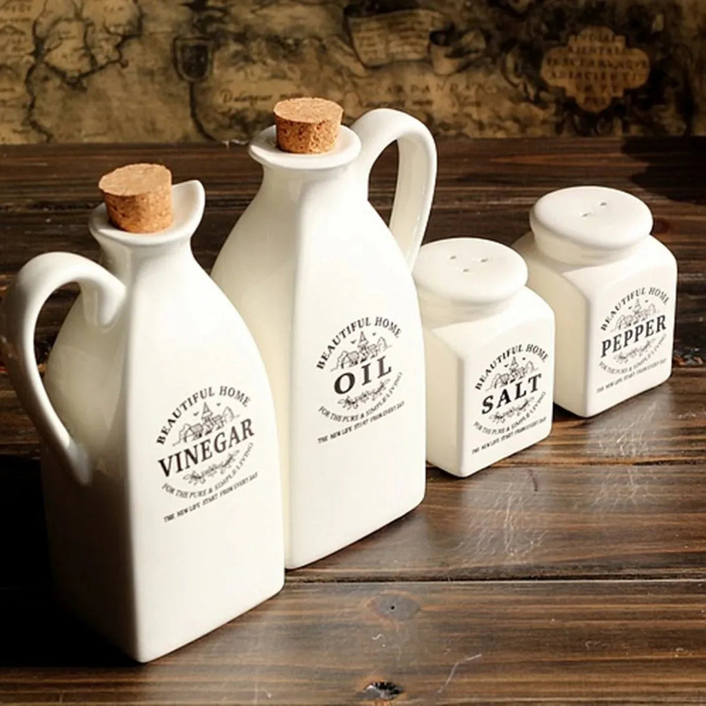 Com 4 potes de cerâmica com tampa de cortiça, este kit vai deixar seus temperos sempre à mão e sua cozinha mais charmosa e organizada.