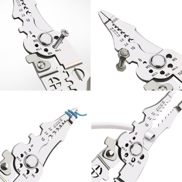 • 10 funções em um único alicate: Corte, descascamento, crimpagem, dobra, corte de fio, aperto, raspagem e muito mais.